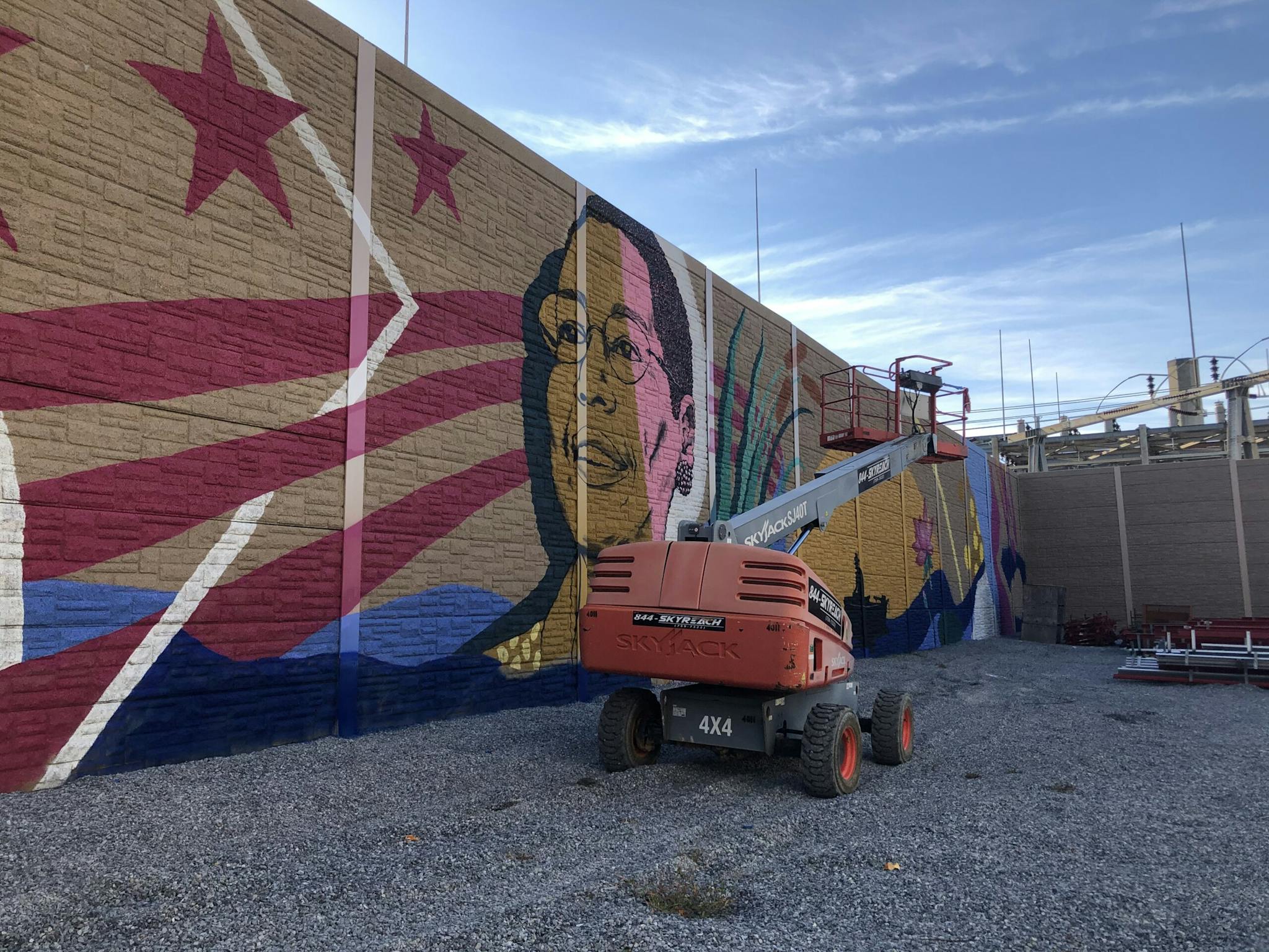 A precast wall was specified to protect future residents from an adjacent industrial yard. The wall would create a visibility shield as well as provide a natural stone façade. To further integrate with the surrounding community, murals by local artists were painted on the walls.