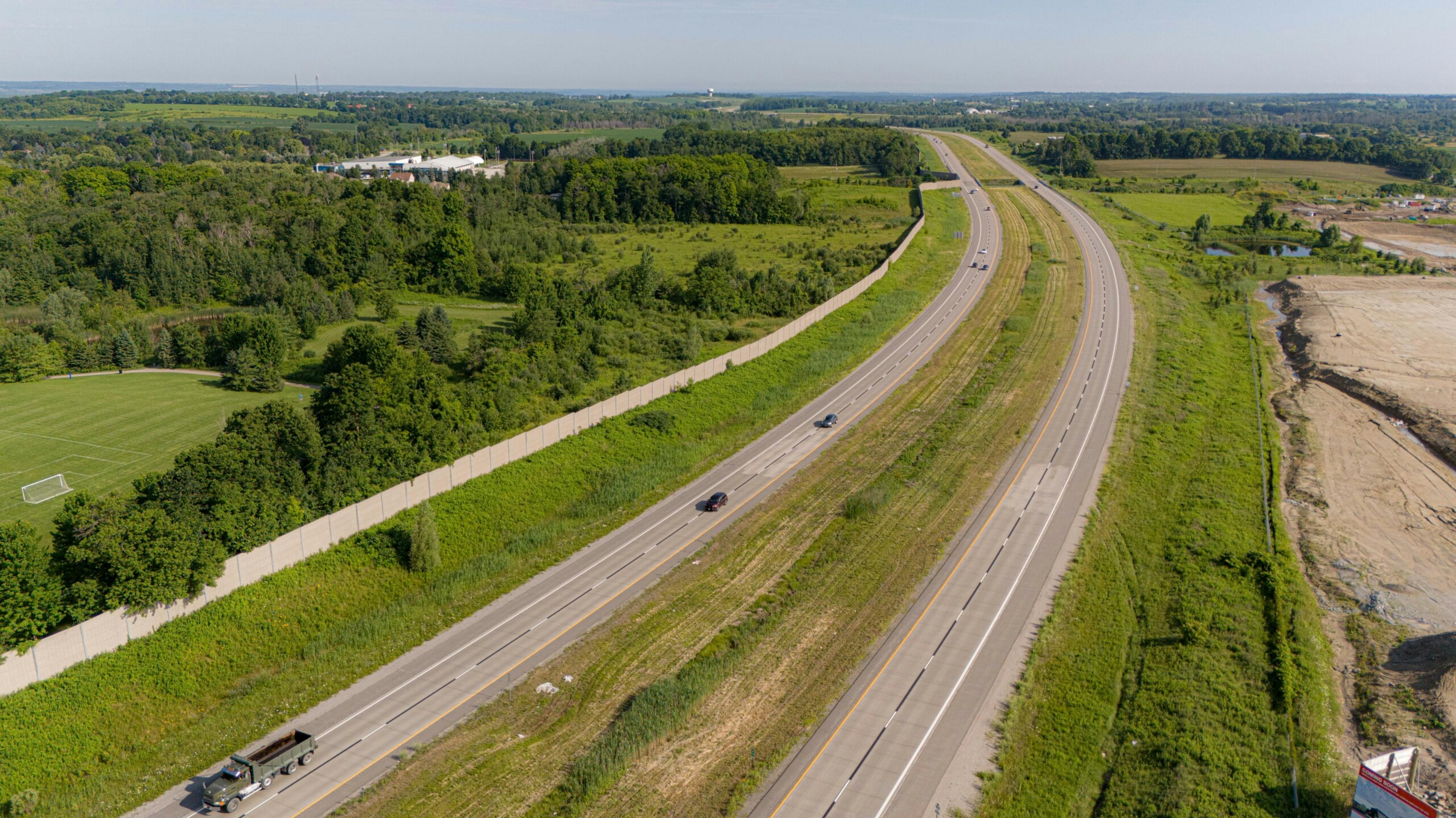 Learn moreThe only thing separating Sharon Hills Park from the highway used to be a 1.5-metre chain-link fence. Residents of Sharon, Ontario, were concerned about the excessive noise from the Highway 404 extension. After its opening in 2014, a more effective solution was advocated for and the province responded with the construction of 2.67-kilometre noise barrier to address the issue.