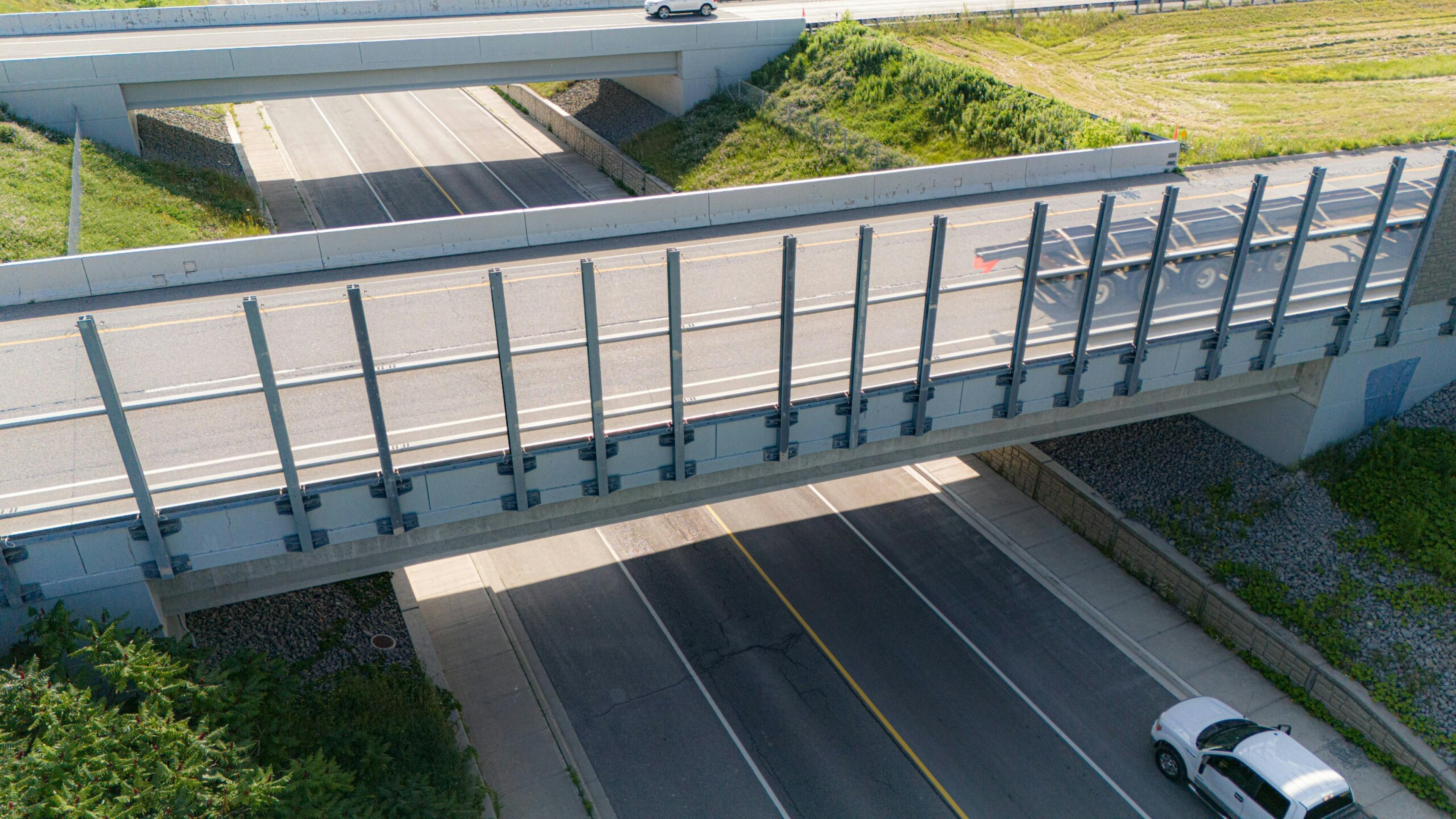 Acrylite Soundstop MASH TL-4 Structure-mounted Noise Barrier System was incorporated into a section of the barrier across the bridge to maintain views for safety purposes.