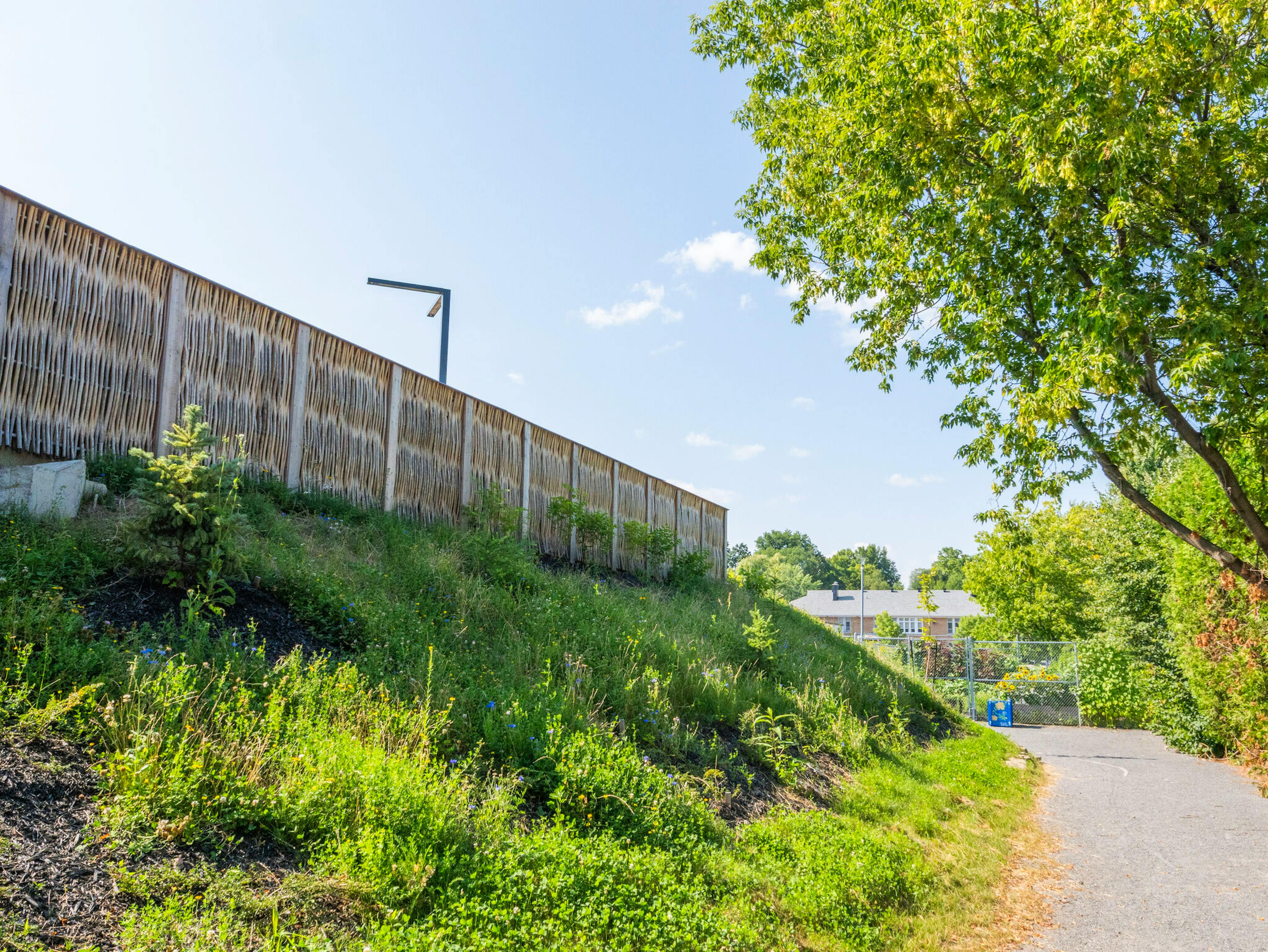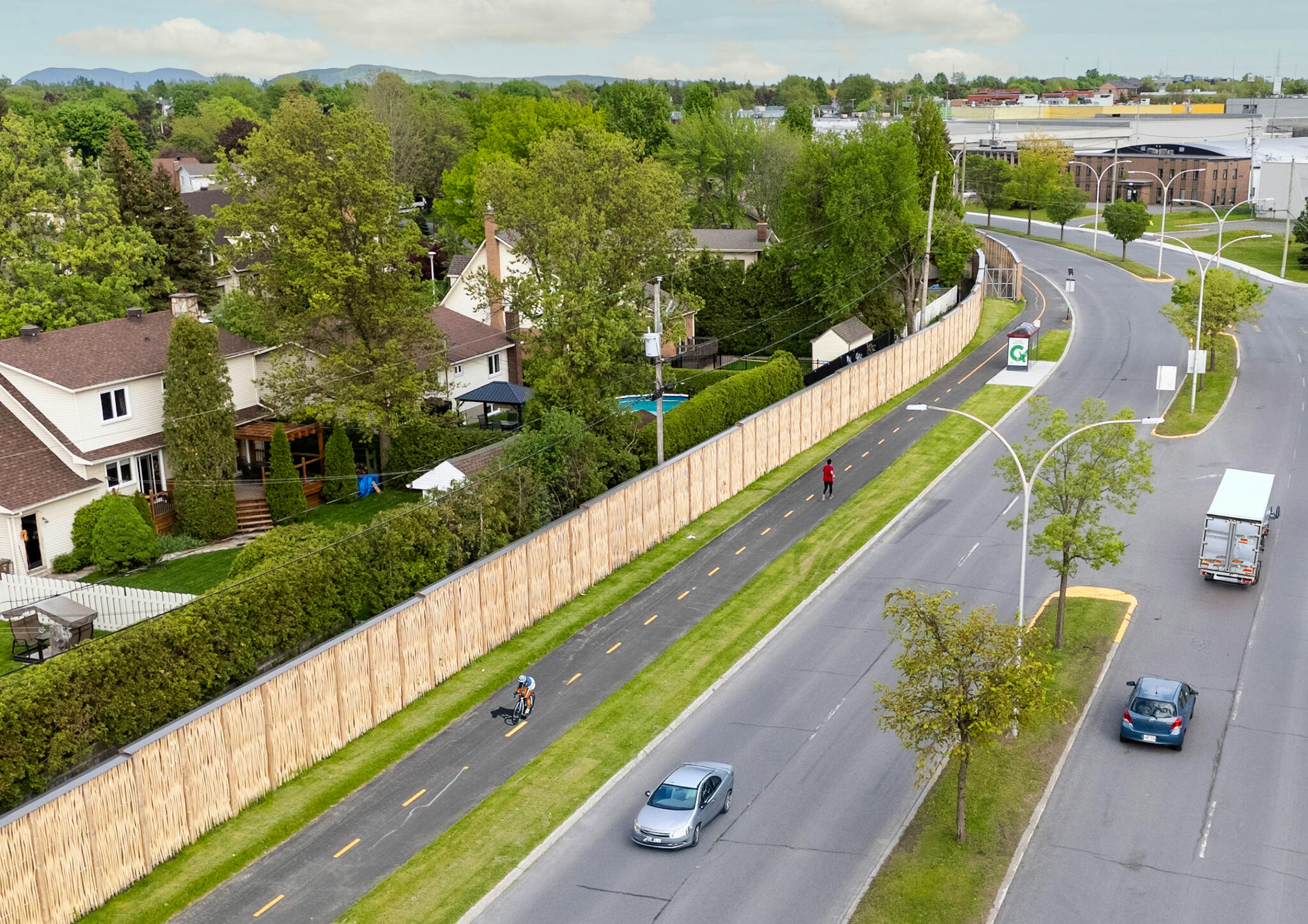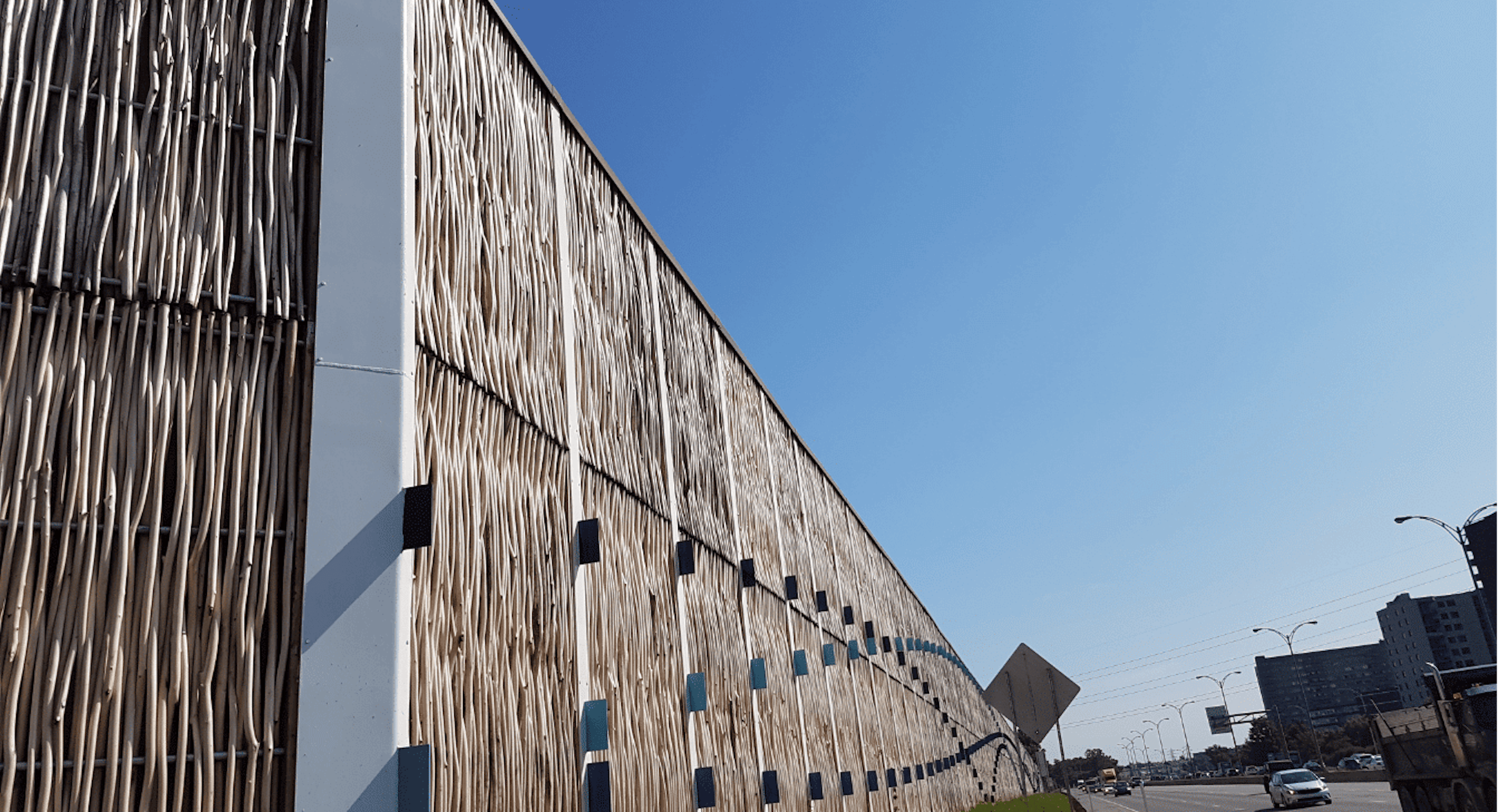 The HF1 larch wood noise barrier, designed in Germany, provides excellent noise mitigation and remarkable durability. Incorporating locally grown larch with acoustic mineral wool, it maximizes acoustic performance through innovative technology that minimizes wood contact areas.